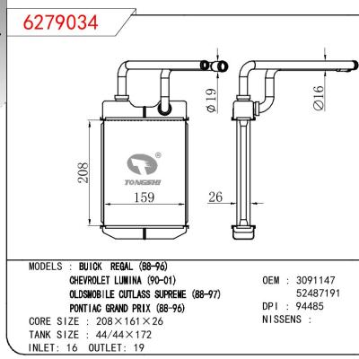 适用于GM DODGE BUICK REGAL 88-96/CHEVROLET LUMINA 90-01/OLDSMOBILE CUTLASS SUPREME 88-97/PONTIAC GRAND PRIX 88-96 OEM:3091147/52487191