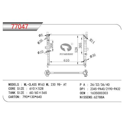 - 适用于奔驰 ML-CLASS W163 -ML 230 散热器 OEM:1635000303/A1635000303/1635000303