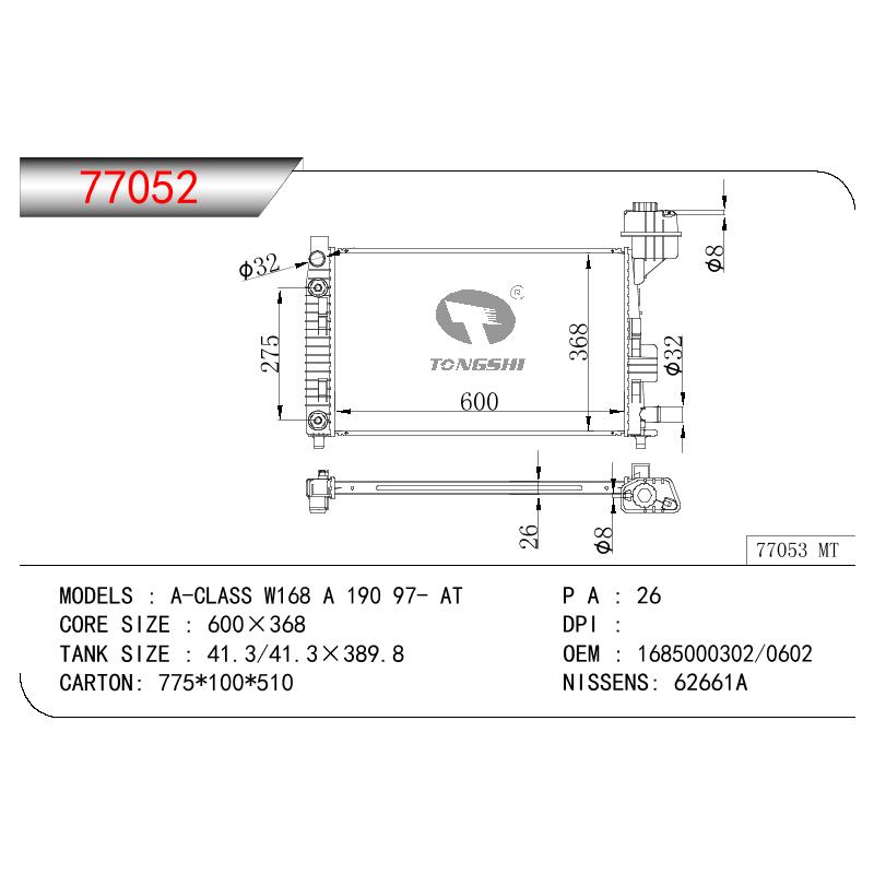 - 适用于BENZ A-CLASS W168 A190 OEM:1685000302/1685000602/1685000202/1685000302/1685000602/A1685000202/A1685000302/A1685000602/1685002002