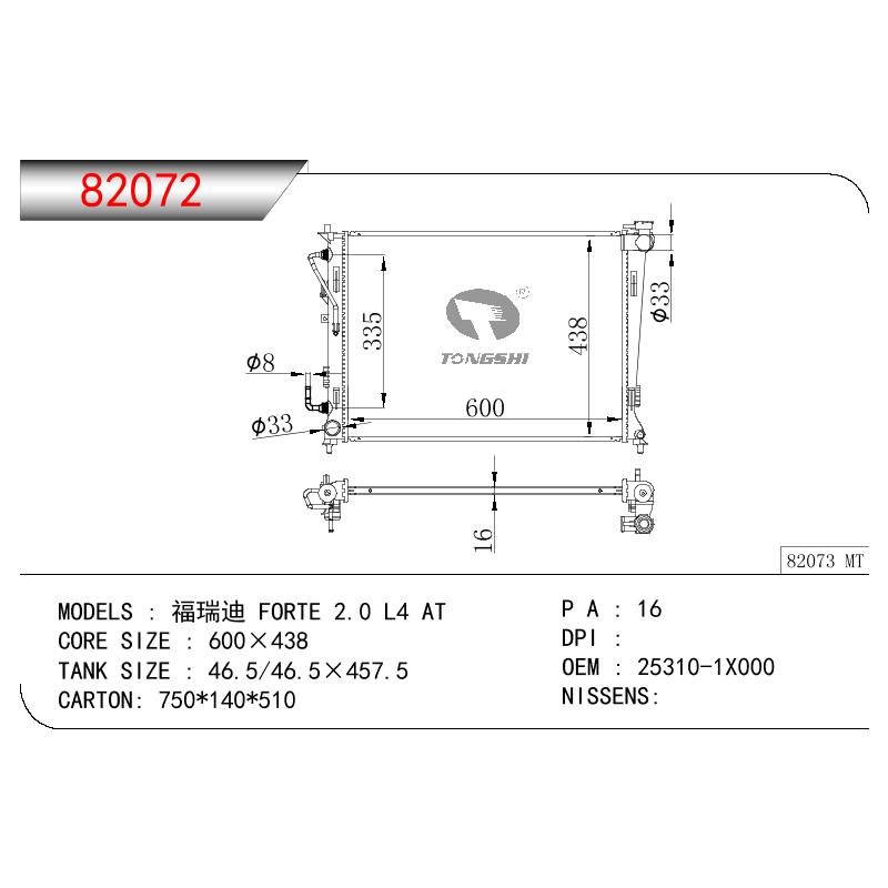 适用于KIA 福瑞迪 FORTE 2.0 L4 OEM:25310-1X000/253101X000