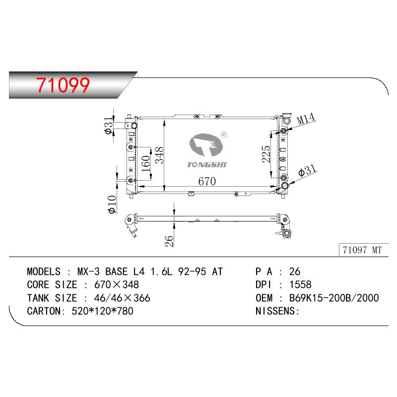 - 适用于MAZDA MX-3 BASE L4 1.6L OEM:B69K15-200B/B69K15-200/B69K-15200/B69K-15200B