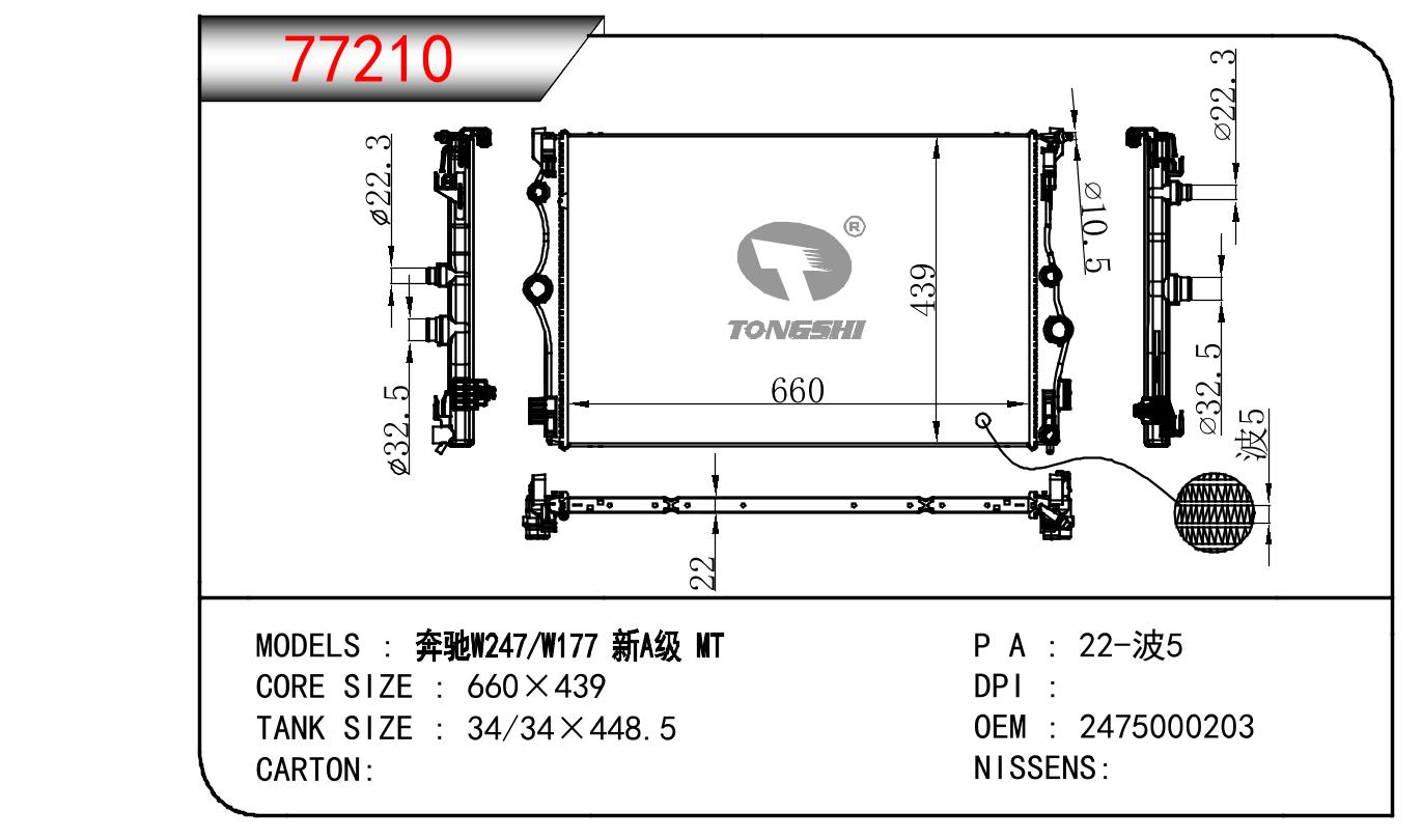 适用于BENZ 奔驰W247/W177 新A级 OEM:2475000203