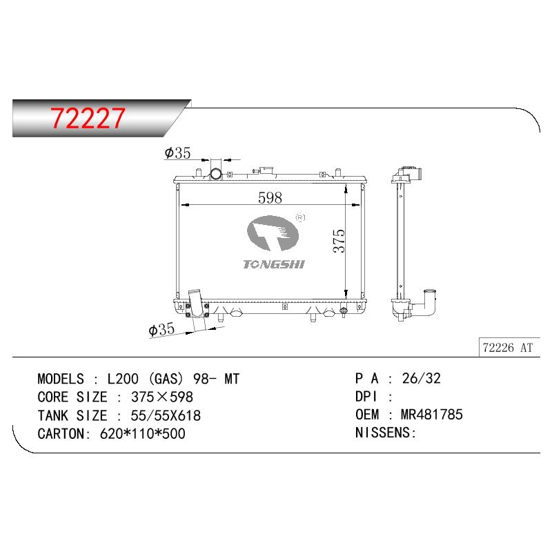 适用于三菱L200 (GAS) 98- MT 散热器 OEM : MR481785