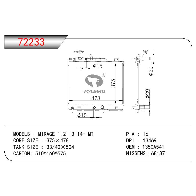 适用于三菱 MIRAGE 1.2 13 散热器 OEM:1350A541