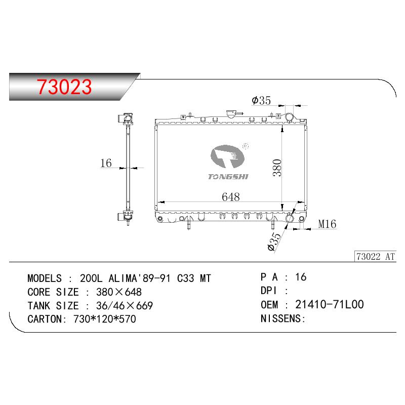 适用于尼桑200L 天籁89-91 C33 MT 散热器 OEM : 21410-71L00