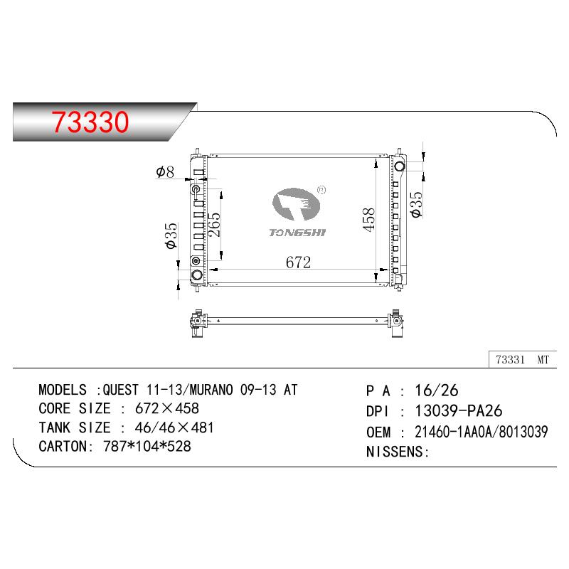 - 适用于NISSAN QUEST MURANO OEM:21460-1AA0A/21460-8013039/214601AA0A/214608013039