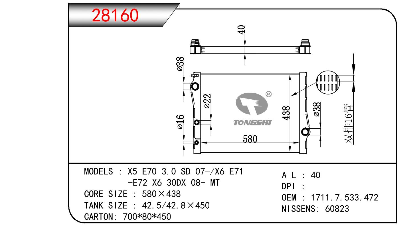 - 适用于宝马X5 E70 3.0 SD 07-/X6 E71-E72 X6 30DX 08- MT散热器 OEM:1711.7.533.472