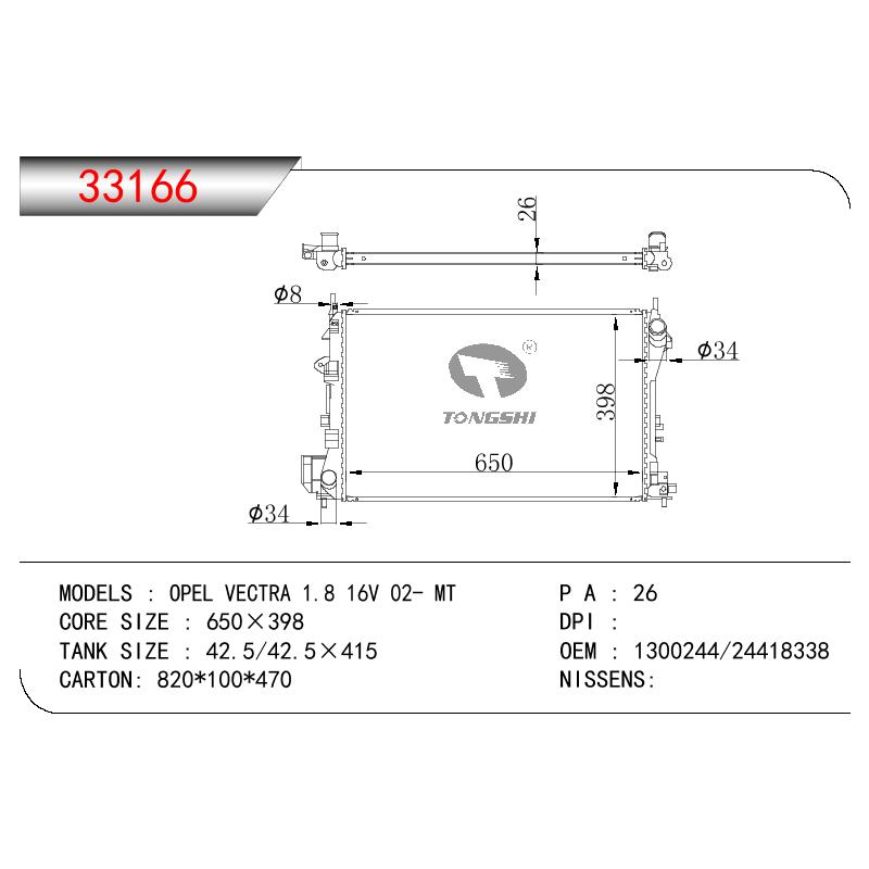 适用于欧宝威达 1.8 16V 02- MT散热器 OEM : 1300244/24418338