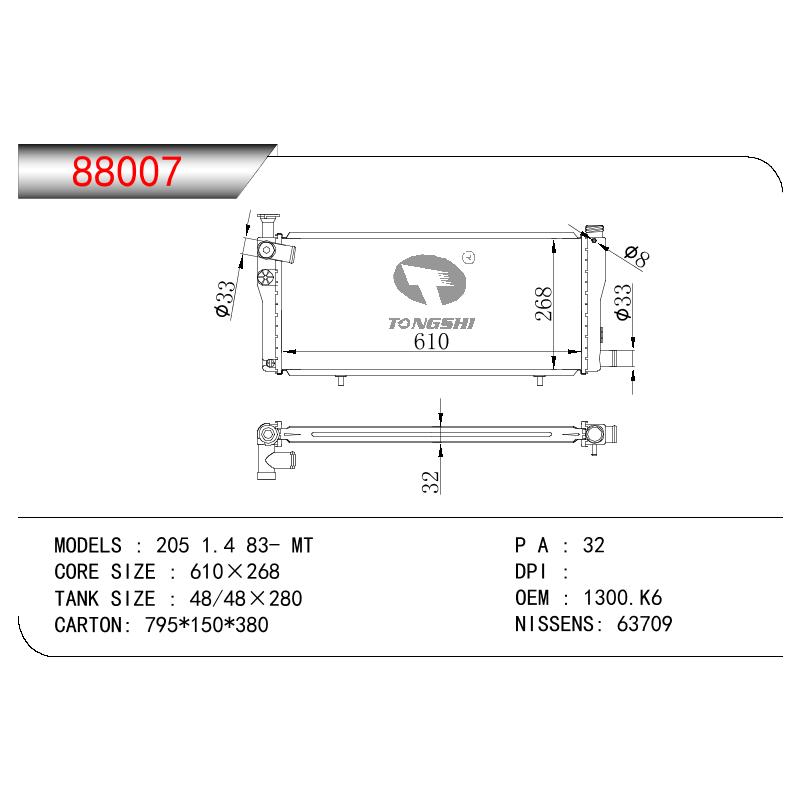 适用于标致 205 1.4 83- MT散热器 OEM : 1300.K6