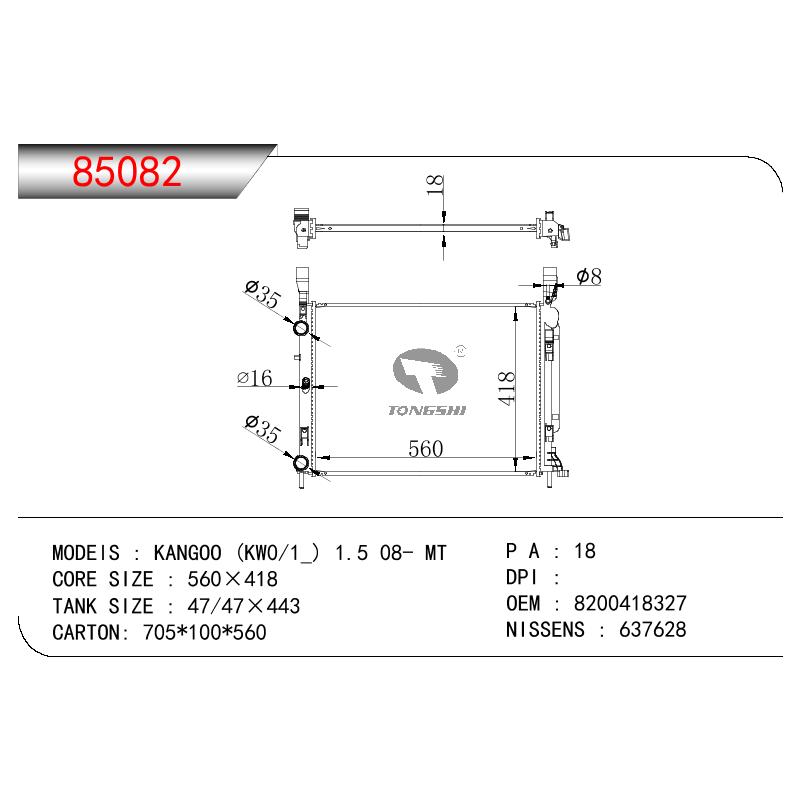 适用于雷诺KANGOO (KW0/1_) 1.5 08- MT散热器 OEM : 8200418327