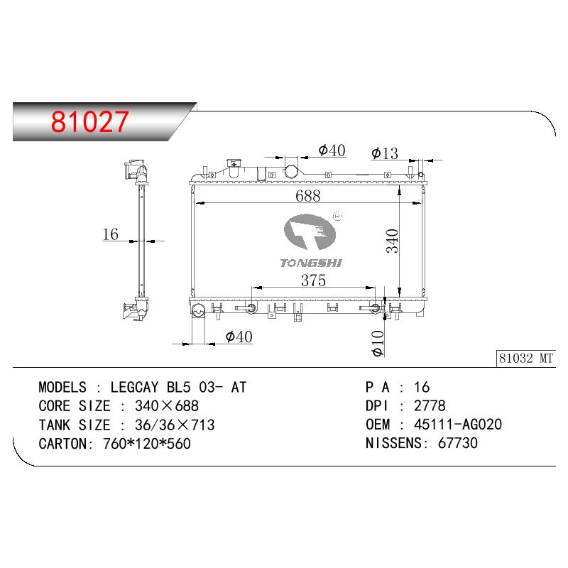 - 适用于SUBARU LEGACY BL5 OEM:45111-AG020/45111-AG021/45111AG020/45111AG021