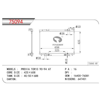 - 适用于丰田 PREVIA TCR10 90-94 AT 散热器 OEM : 16400-76081