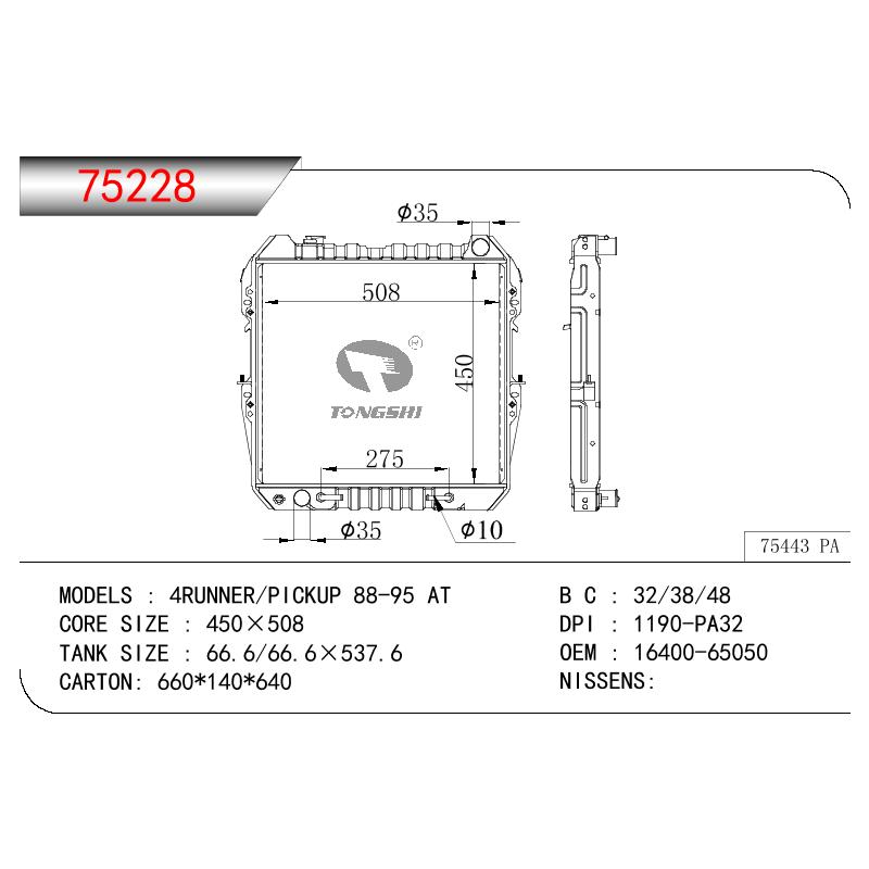 适用于TOYOTA HILUX 2.4-3.0 LN85 OEM:16400-65050/1640065050