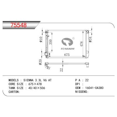 适用于丰田塞纳 3.3L V6 AT散热器 OEM : 16041-0A380