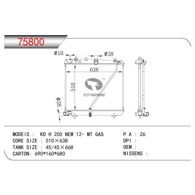 适用于丰田 KD H 200 新款 12- MT GAS散热器