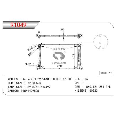 - 适用于奥迪A4 L4 2.0L 09-14/S4 1.8 TFSI 07- MT散热器 OEM : 8K0.121.251 R/L