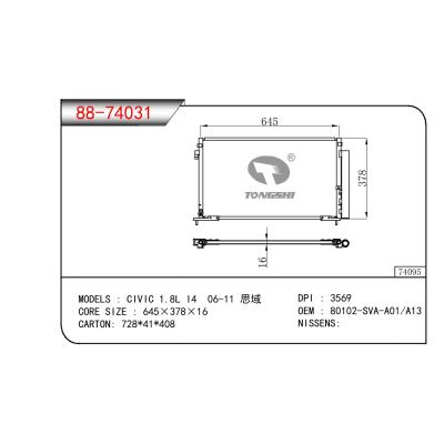 - 适用于本田思域 1.8L I4 06-11 冷凝器 OEM:80102-SVA-A01/80102-SVA-A13/80102-SVA-A11
