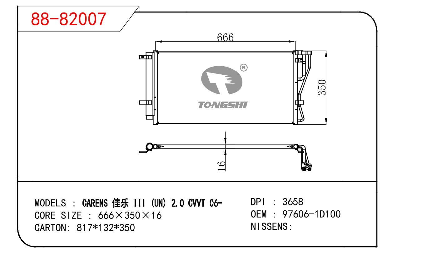 适用于起亚 佳乐 III (UN) 2.0 CVVT冷凝器 OEM : 97606-1D100
