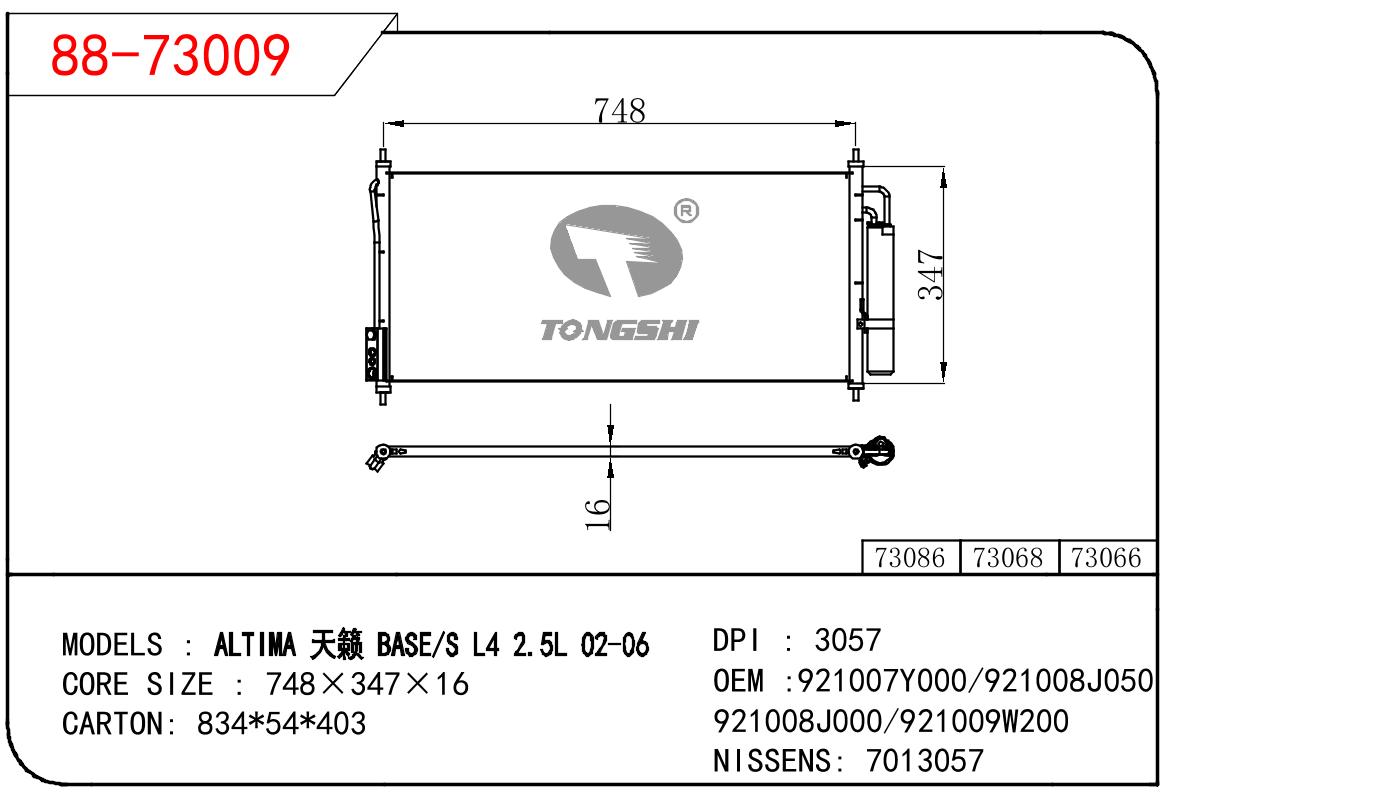 - 适用于日产尼桑天籁 BASE/S L4 2.5L冷凝器 OEM :921007Y000/921008J050/921008J000/921009W200