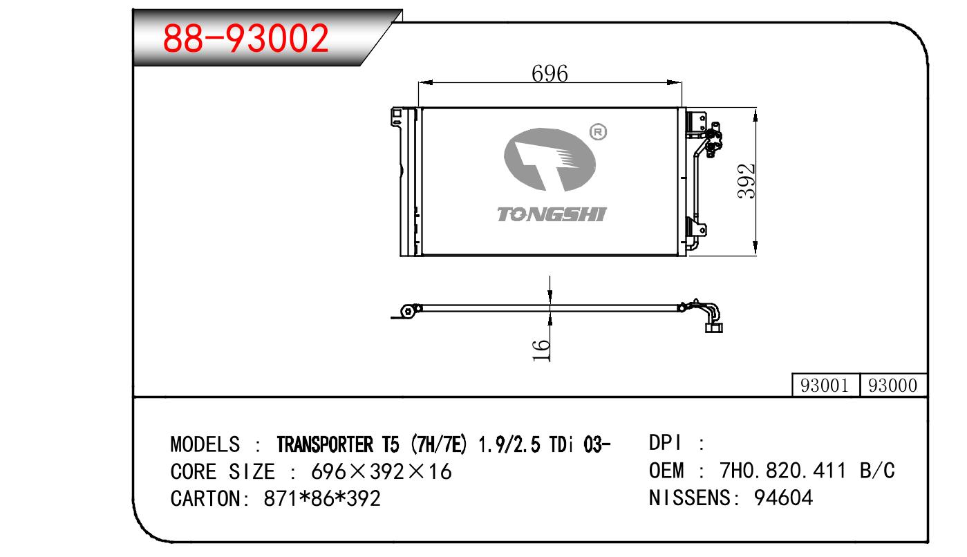 - 适用于大众TRANSPORTER T5(7H/7E) 1.9/2.5 TDI 03- 冷凝器 OEM : 7H0.820.411 B/C