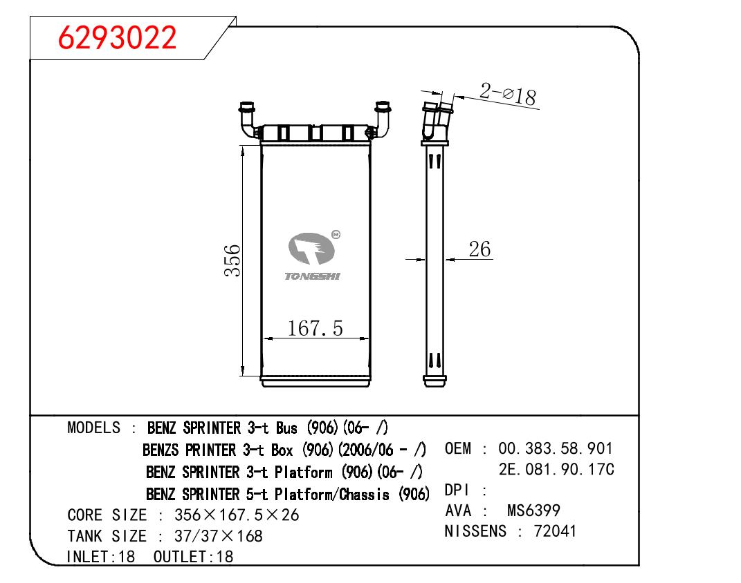 - 适用于奔驰凌特3-T (906) 06-/3-T BOX (906) (2006) 06-/3-T PLATFORM (906) 06-/5-t Platform/Chassis(906)暖风