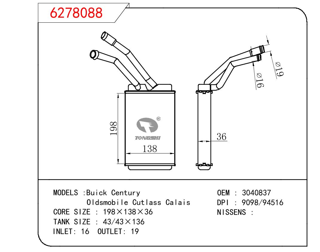 适用于GM DODGE BUICK CENTURY /OLDSMOBI LE CUTLASS CALAIS OEM:3040837