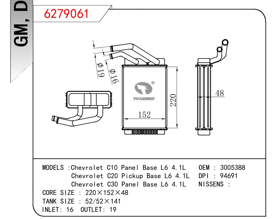- 适用于GM DODGE Chevrolet C10 Panel Base L6 4.1L/Chevrolet C20 Pickup Base L6 4.1L/Chevrolet C30 Panel Base L6 4.1L OEM:3005388