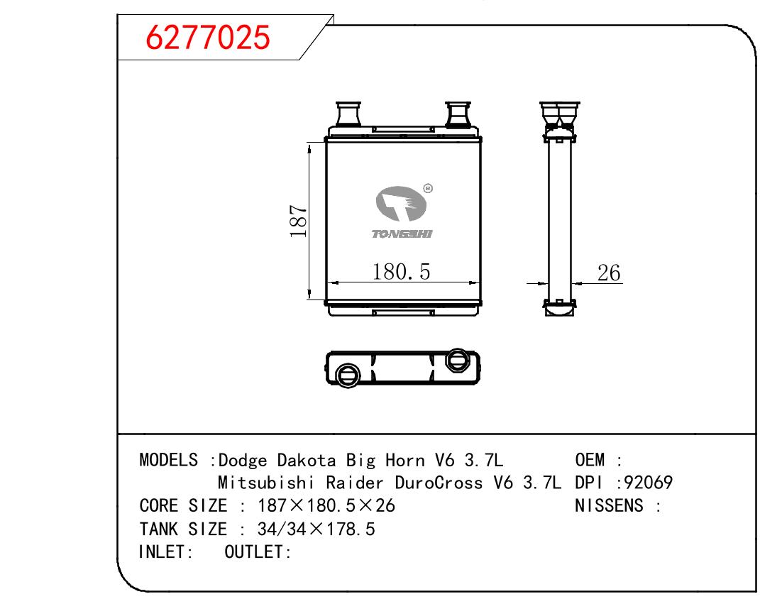 适用于道奇 Dakota Big Horn V6 3.7L/三菱 Raider DuroCross V6 3.7L暖风