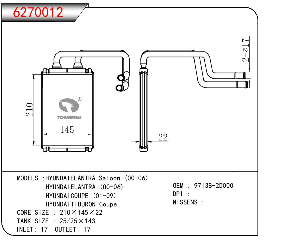 - 适用于HYUNDAI HYUNDAIELANTRA SALOON 00-06/HYUNDAIELANTRA 00-06/HYUNDAICOUPE 01-09/HYUNDAITIBURON COUPE OEM:97138-2D000/971382D000