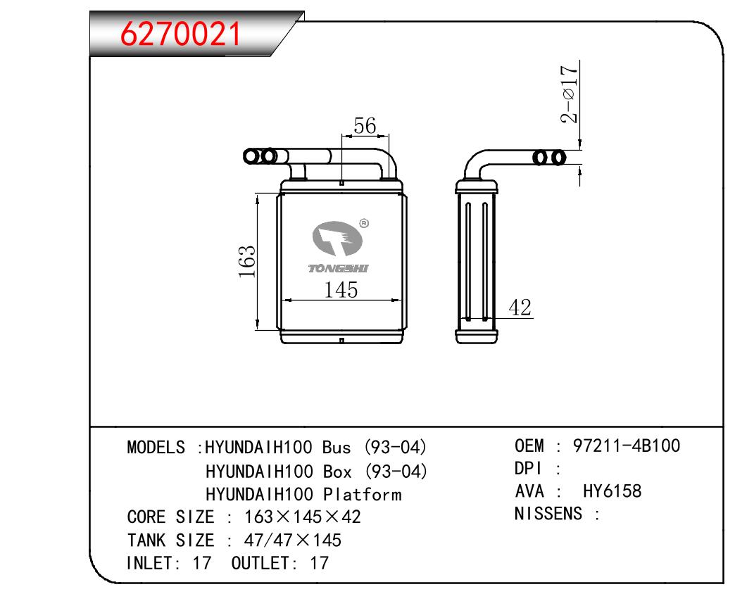 - 适用于HYUNDAI HYUNDAI H100 BUS 93-04/HYUNDAI H100 BOX 93-04/HYUNDAI H100 PLATFORM OEM:97211-4B100/972114B100