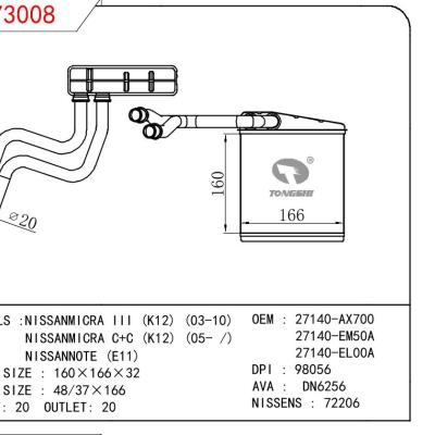 - 适用于尼桑MICRA III (K12) (03-10)/MICRA C+C (K12) (05- /)/NOTE (E11) 暖风 OEM : 27140-AX700/EM50A/EL00A