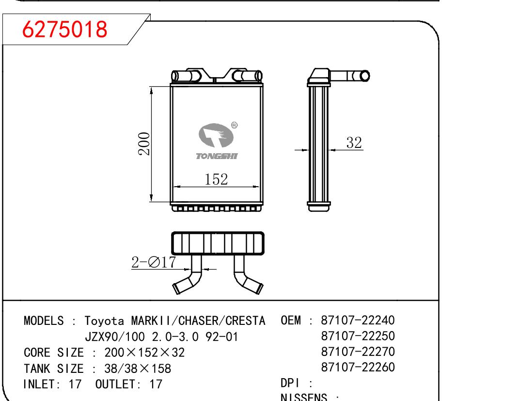 - 适用于TOYOTA Toyota MARKII/CHASER/CRESTA/JZX90/100 2.0-3.0 92-01 OEM:87107-22240/87107-22250/87107-22270/87107-22260