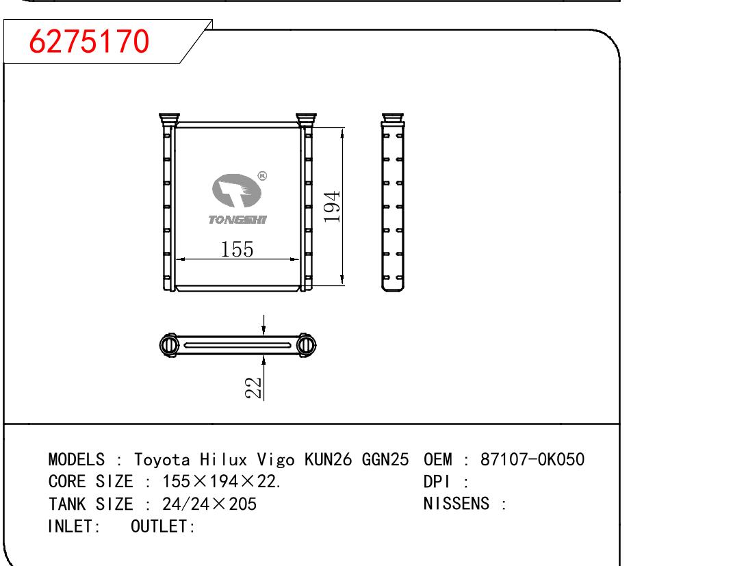 适用于丰田Hilux Vigo KUN26 GGN25暖风 OEM : 87107-0K050