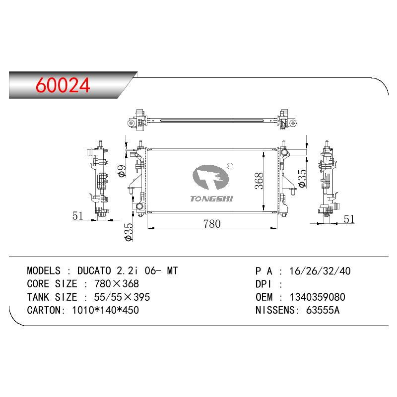 适用于菲亚特DUCATO 2.2i 06- MT散热器OEM : 1340359080