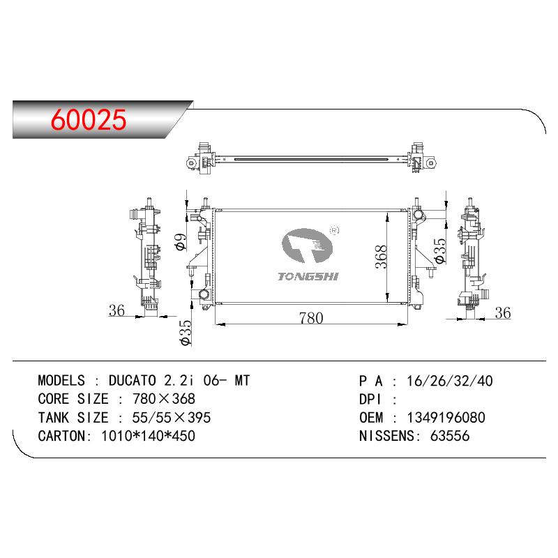 适用于菲亚特DUCATO 2.2i 06- MT散热器OEM : 1349196080