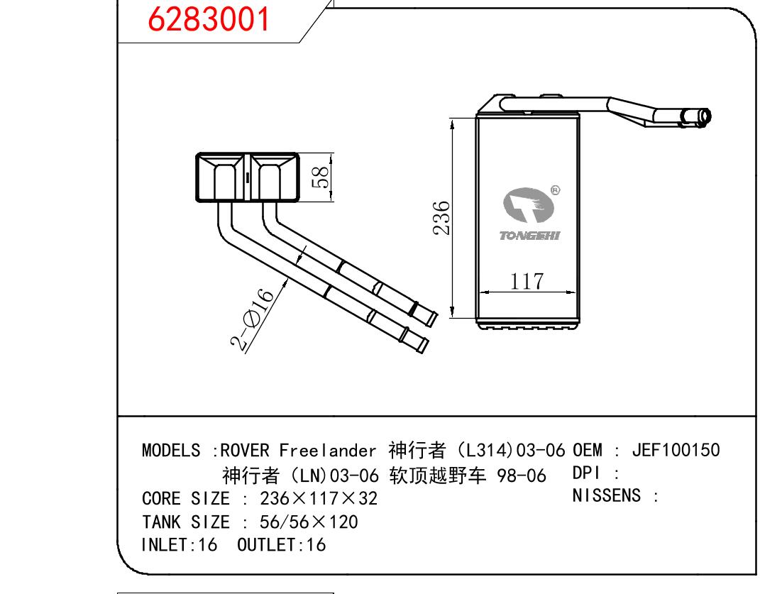 适用于路虎神行者(L314)03-06 /神行者(LN)03-06/ 软顶越野车 98-06 汽车暖风 OEM : JEF100150