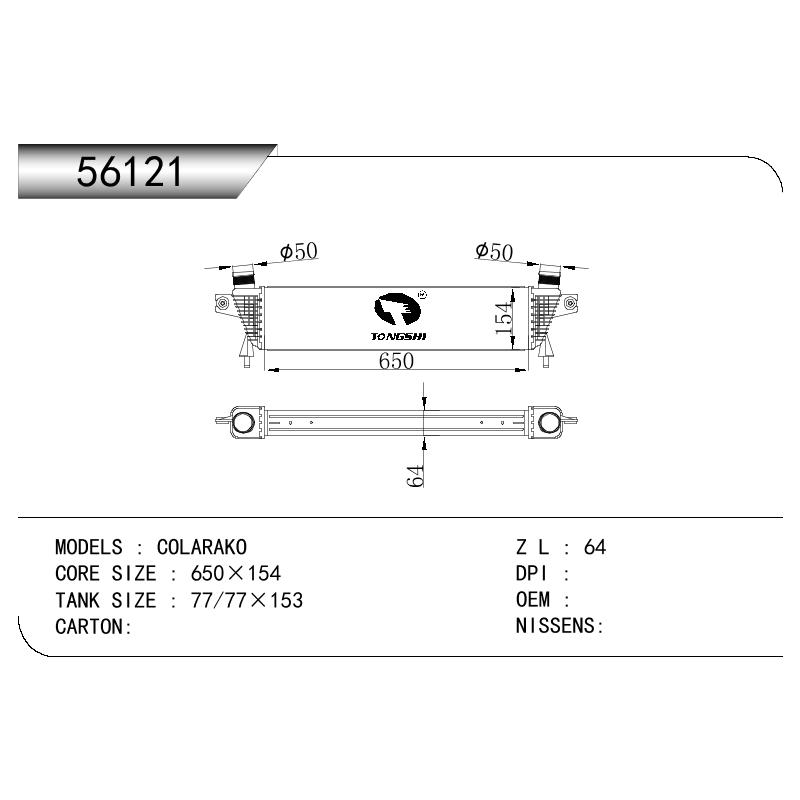 适用于霍尔顿科罗拉多 RG 2.8LT中冷器 OEM : 94714569