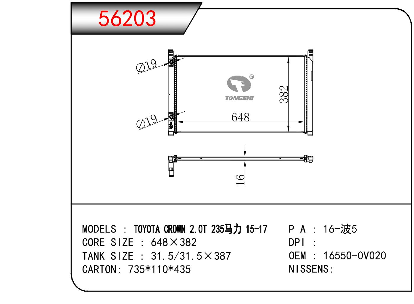 适用于TOYOTA TOYOTA CROWN 2.0T 235马力 OEM:16550-0V020/165500V020