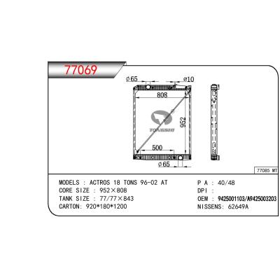 - 适用于奔驰 ACTROS 18 TONS 散热器OEM:9425001103/9425001703/9425003103/9425003203/9425003303/A9425001103/A9425001703/A9425003103/A9425003203/A9425003303