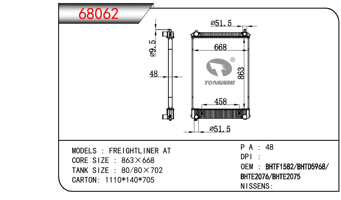 适用于FREIGHTLINER AT重卡散热器 OEM :BHTF1582/BHTD5968/BHTE2076/BHTE2075