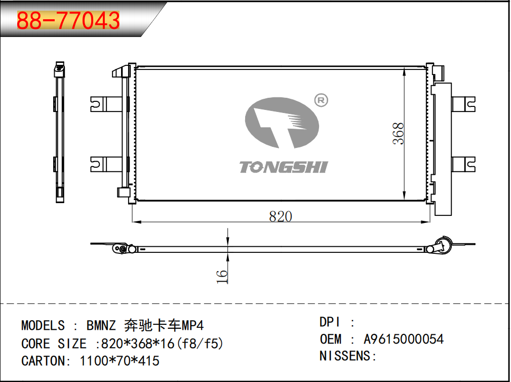 适用于奔驰卡车MP4冷凝器 OEM : A9615000054