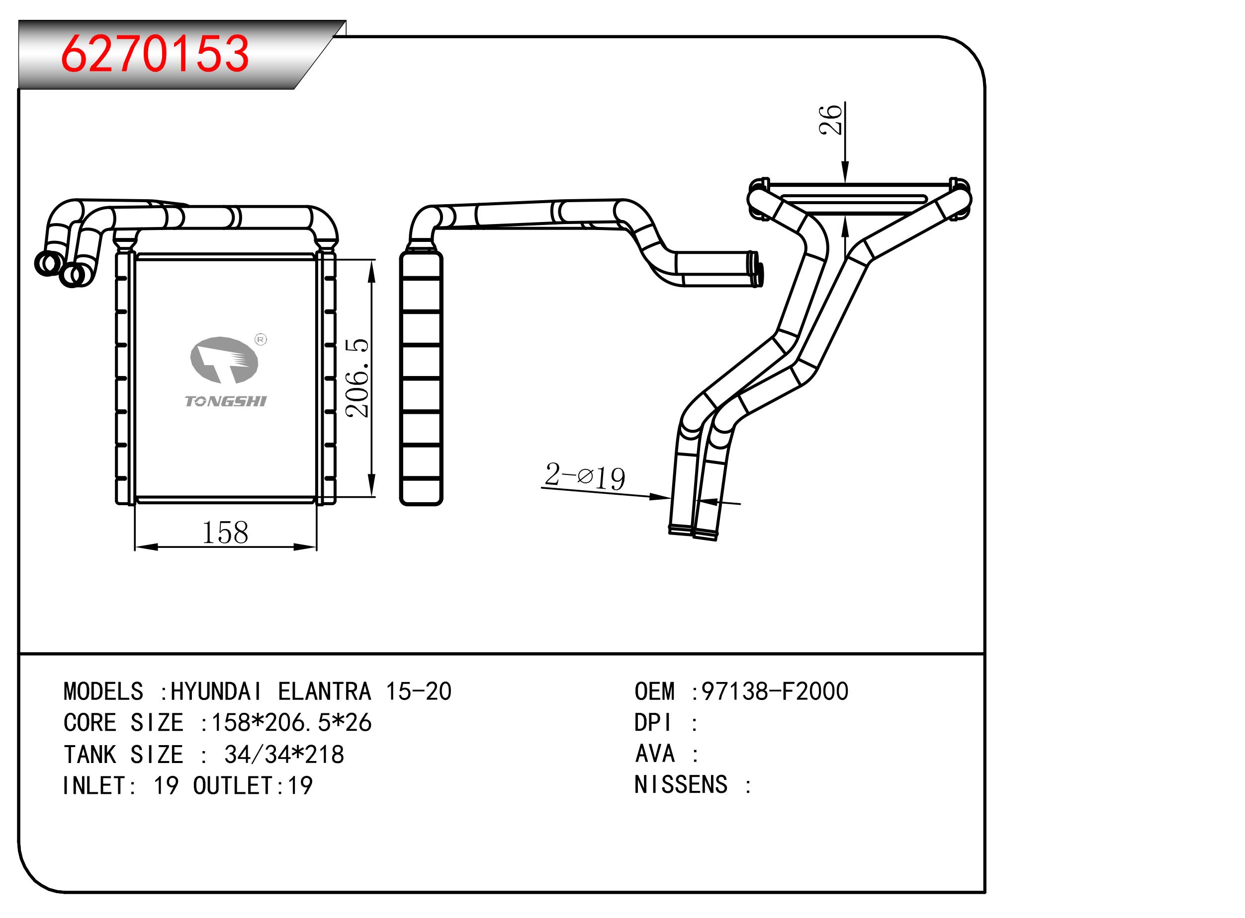 适用于现代伊兰特15-20暖风 OEM:97138-F2000
