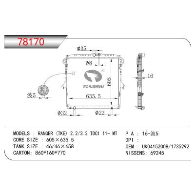 - 适用于FORD RANGER(TKE) 2.2/3.2 TDCI OEM:UK0415200B/1735292/1726084/5246502