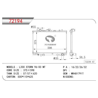 适用于三菱 L200 STORN 散热器 OEM:MR481791T