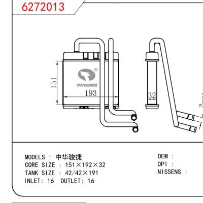• 适用于奇瑞瑞虎(新款) MT散热器 OEM : F1301000B1