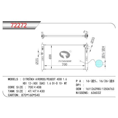 适用于三菱 CITROENC4 AIRCEOSS/标致4008 1.6 HDI/ASX (GAO) 16DI-D 散热器 OEM:1611262980/1350A763